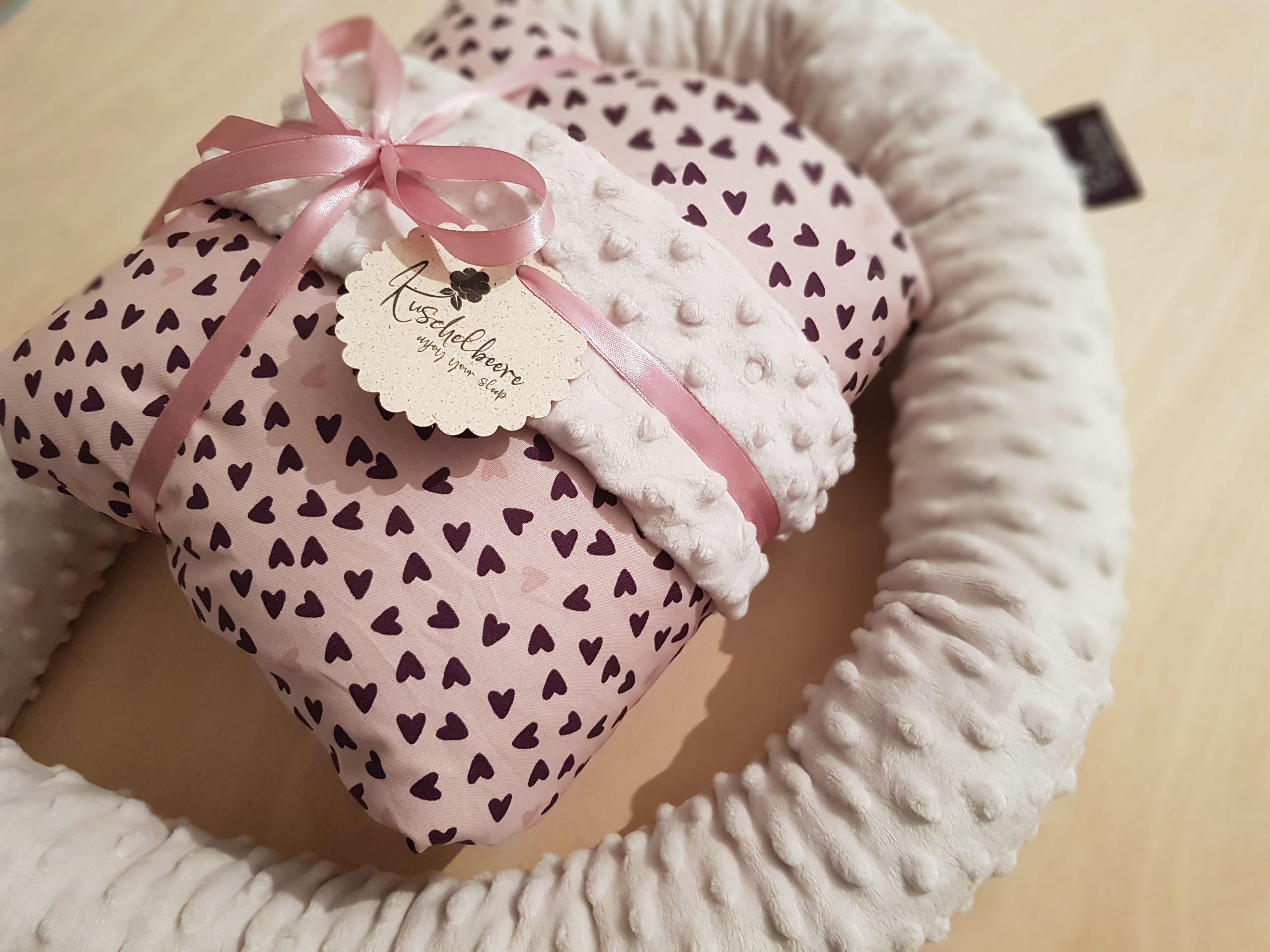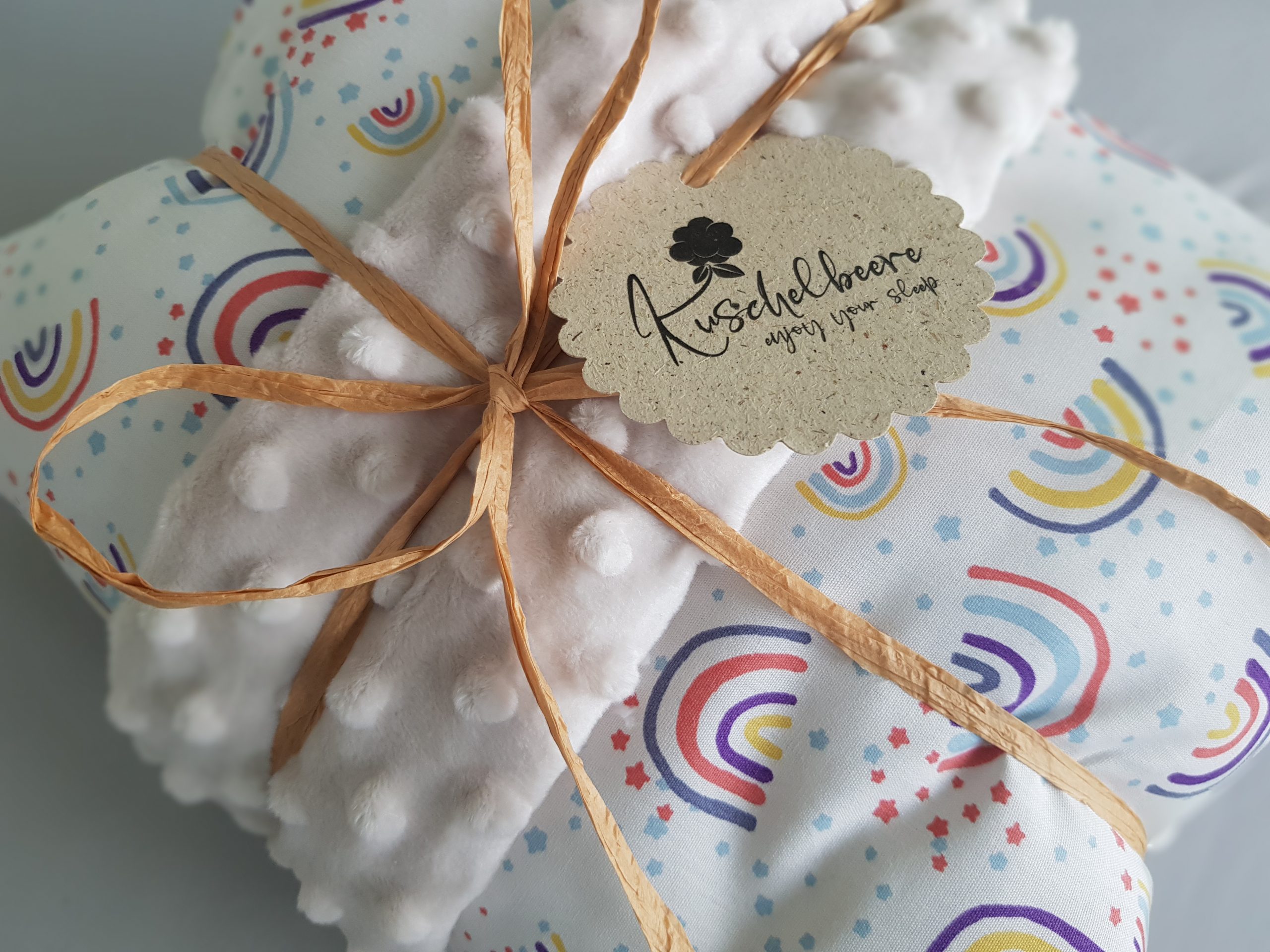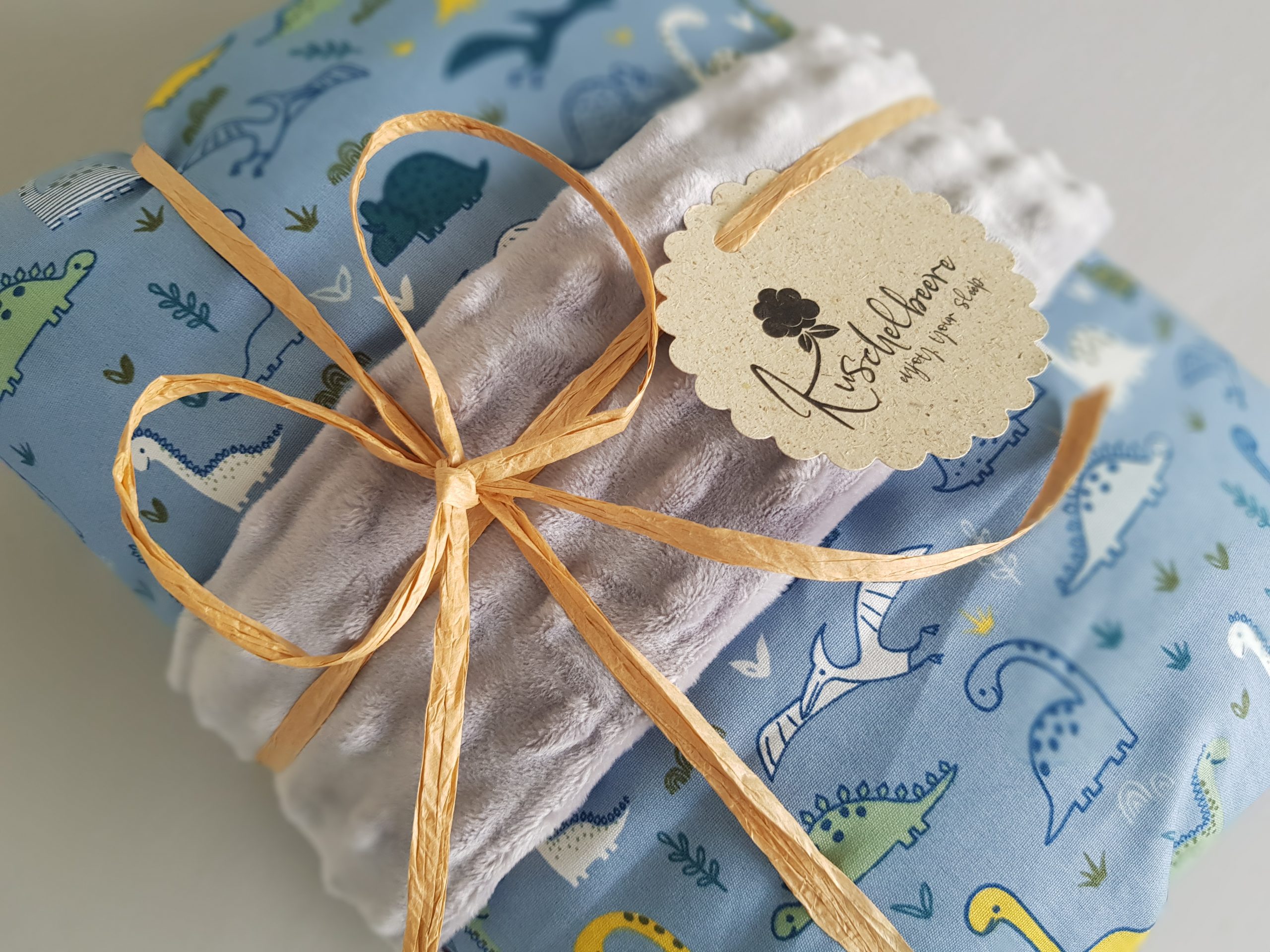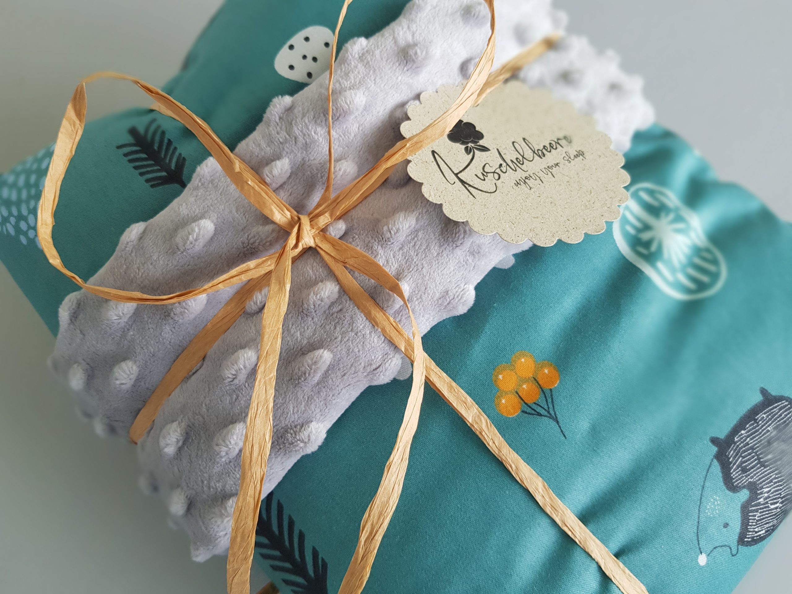 Unsere Kuschelbeerdecke besteht aus zwei verschiedenen Stoffen: